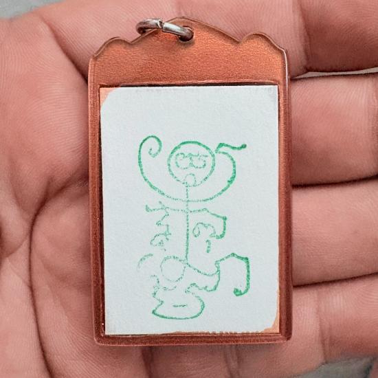 รูปถ่ายฟิล์มซีเปียหลังปั๊มยันต์ตุ๊กตาหมึกสีเขียว+ตอกโค๊ตนกยูง ปี 58 (กรรมการ) หลวงพ่อกวย วัดโฆสิตาราม ชัยนาท |