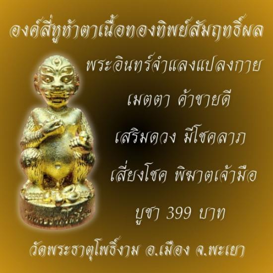 องค์สี่หูห้าตาตามตำนานล้านนา เชื่อว่าคือพระอินทร์แปลงกายลงมาช่วยเหลือมนุษย์ที่ลำบากตกทุกข์ได้ยาก กินถ่านไฟร้อนเป็นอาหารถ่ายออกมาเป็นทองคำ ผู้ไดมีไว้บูชาจะมีแต่เฮงกับเฮง ประสบแต่ความสำเร็จ ความเจริญรุ่งเรือง เสริมบารมีโชคลาภ ธุระกิจ งานงาน ค้าขายร่ำรวย เสี่ยงโชค พิฆาตเจ้ามือ สายนักเสี่ยงโชค แสวงโชค ไม่ควรพลาด องค์สี่หูห้าตาพิธีปลุกเสก 4วาระ ของดีอันดับต้นของเมืองพะเยา ที่มีประสบการณ์มากที่สุดในเวลานี้ ต่างชาตินิยมหากันมาก บอกได้เลยครับองค์สี่หูห้าตาวัดพระธาตุโพธิ์งาม เครื่องรางสายมู สายโชคลาภมาแรงอันดับต้นของเมืองพะเยาในเวลานี้ท่านที่อยากได้ของดีของแรงไม่ควรพลาดโอกาศนี้ครับ