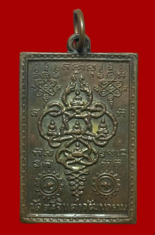 เหรียญนาคเกี้ยว วัดตรีจินดาวัฒนาราม พิมพ์สี่เหลี่ยม นิยม ปี2500 จ.สมุทรสงคราม |