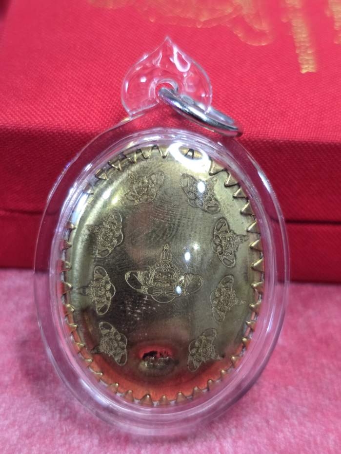 ล็อกเก็ตเหนือดวงฉากทอง หลังทองเหลือง ใส่มวลสาร ตอกราหู รอบ เลข74 (วัดสร้าง) พร้อมเลี่ยมพลาสติกใสกันน้ำ *พระไม่มีกล่อง |
