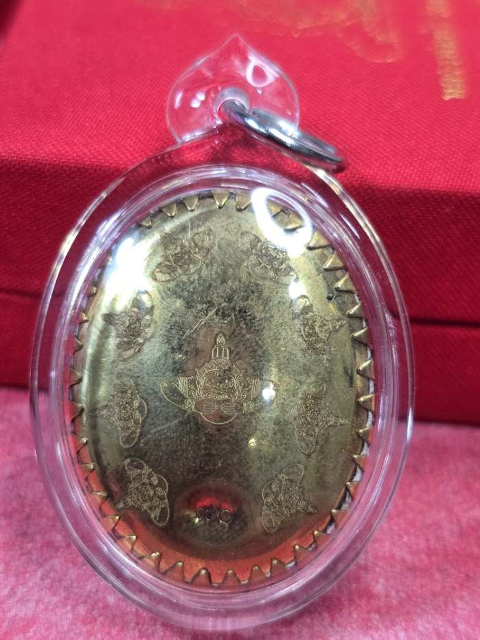 ล็อกเก็ตเหนือดวงฉากทอง หลังทองเหลือง ใส่มวลสาร ตอกราหู รอบ เลข90 (วัดสร้าง) พร้อมเลี่ยมพลาสติกใสกันน้ำ *พระไม่มีกล่อง |
