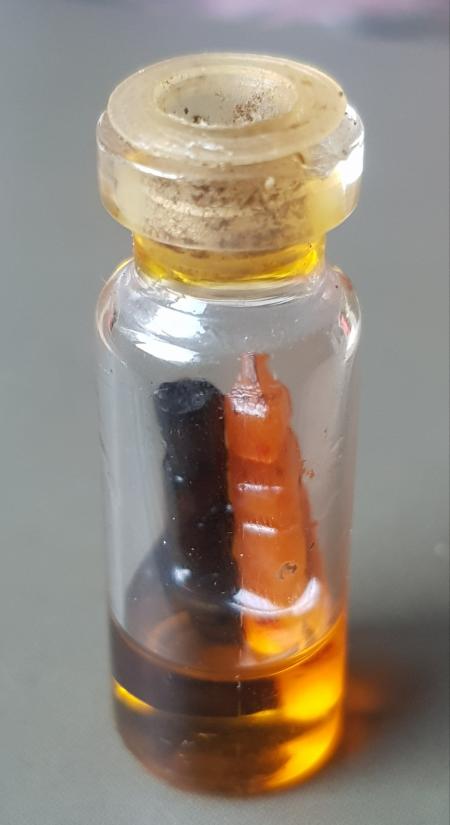 รักยม หลวงปู่ชื่น วัดตาอี บุรีรัมย์ แช่อยู่ในน้ำมันจันทน์ ปัจจุบันน้ำมันเริ่มแห้งไปตามกาลเวลา เก่าๆเดิมๆ หายากครับ |
