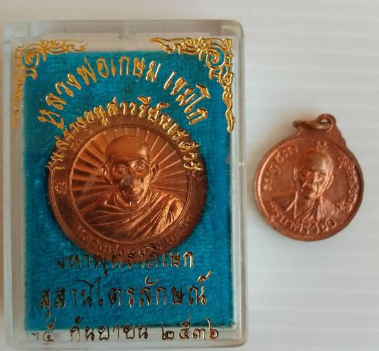 เหรียญกลม หลวงพ่อเกษม รุ่นสร้างอนุสาวรีย์นเรศวร ปี 36 และเหรียญกลมหลังครูบาศรีวิชัย ปี 26 รับจำนวน 2 เหรียญ |