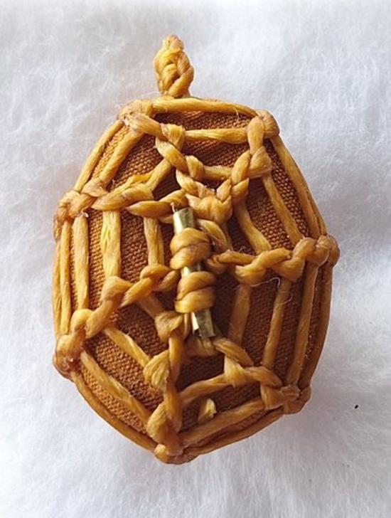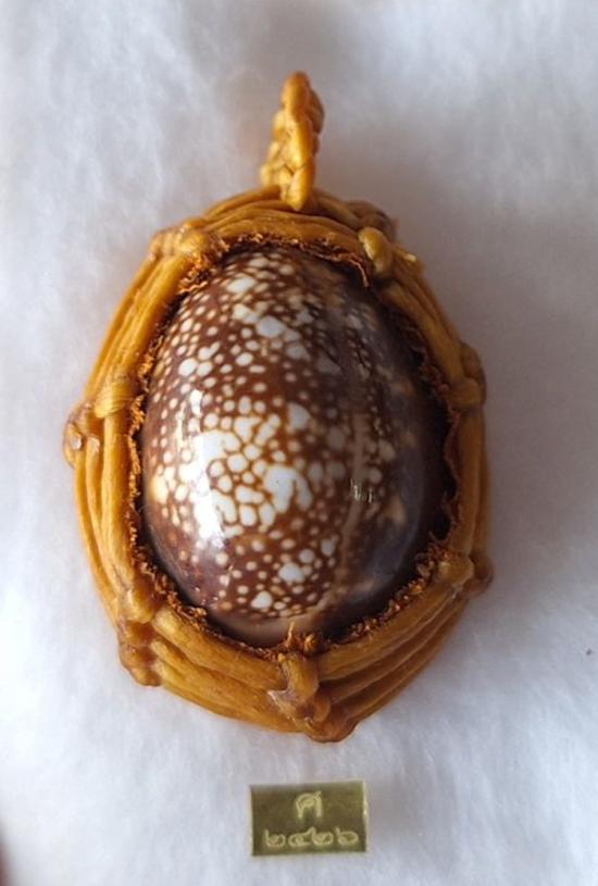 เบี้ยแก้ หุ้มจีวร ถักเชือก หลวงปู่ศิลา วัดโพธิ์ศรีสะอาด มีแผ่นเลขกำกับ ฝังตะกรุดทองเหลือง พร้อมใบคาถา ปี2567 |