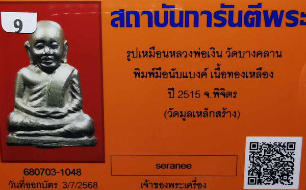 รูปเหมือนหลวงพ่อเงิน วัดบางคลาน พิมพ์มือนับแบงค์ เนื้อทองเหลือง กริ่งดัง ปี2515 จ.พิจิตร(วัดมูลเหล็กสร้าง ) + บัตร G-pra สภาพสวยเดิมค่ะ สภาพตามรูปทุกประการค่ะ
