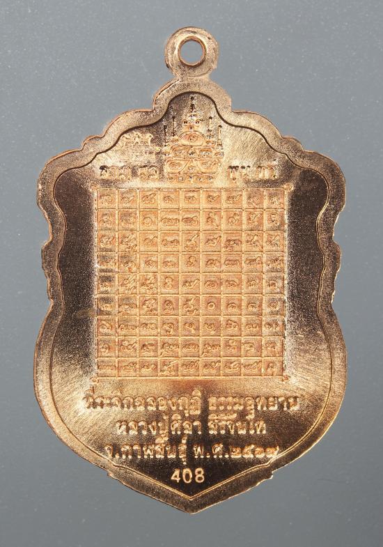 หลวงปู่ศิลา เหรียญเสมาฉลองกุฏิ พิมพ์ใหญ่ เนื้อชนวนทองแดง เลข 408