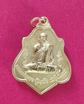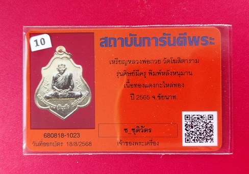 เหรียญหลวงพ่อกวย ชุตินธโร รุ่นศิษย์มีครู เนื้อกะไหล่ทองพ่นทราย หลังหนุมาน ปี 2565 บัตรรับรองG พระ |