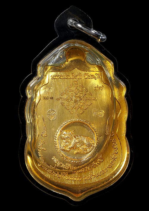 เหรียญเสมาพญาเสืออุดมทรัพย์ พระอาจารย์ประสูติ (หลวงพ่อประสูติ) วัดในเตา จ.ตรัง เนื้อมหาชนวนชุบทองคำ แช่น้ำมันเสือ วัดในเตา สร้างน้อยเพียง 100 องค์เท่านั้นในโลก