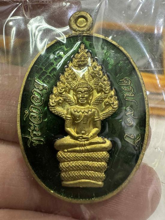 เหรียญนาคปรก รุ่นมหาลาภ91 ปี2557 เนื้อฝาบาตร ลงยาสีเขียว มีกล่อง จำนวน 10 เหรียญ