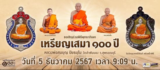 หลวงพ่อสมบุญ วัดลำพันบอง สุพรรณบุรี รุ่น เสมา 100 ปี |
