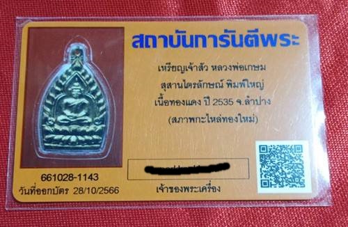 เหรียญเจ้าสัว หลวงพ่อเกษม เขมโกปี35 ทองแดงกะไหล่ทองใหม่ เลี่ยมเงิน พร้อมบัตรสถาบันการันตีพระครับ.