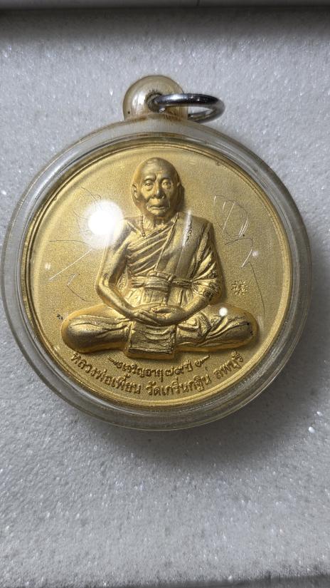เหรียญหลวงพ่อเพี้ยนรุ่นบาตรน้ำมนต์ปี 48 เนื้อไมครอนทอง สวยเดิมเลี่ยมพร้อมใช้ มีจารหายากครับ |