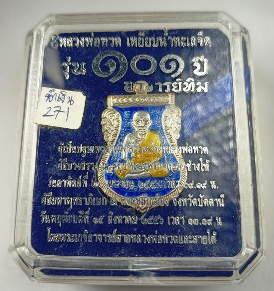 เหรียญเสมาหน้าเลื่อน หลวงพ่อทวด 101ปี อ.ทิม เนื้อเงินลงยาน้ำเงิน เบอร์ 271 พร้อมกล่องเดิมครับ (น้ำเงิน)