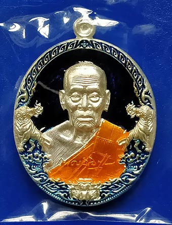 เหรียญหลวงพ่อพัฒน์ วัดห้วยด้วน "รุ่นราชาพยัคฆ์ปี" 2563 เนื้อเงินลายเสือ ลงยาน้ำเงิน ลงยาจีวร เลขสวย