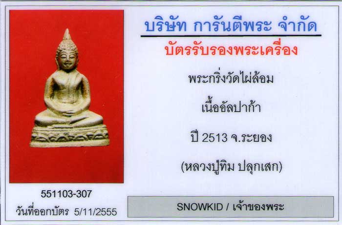 พระกริ่ง เนื้ออัลปาก้า วัดไผ่ล้อม จ.ระยอง หลวงปู่ทิม พร้อมบัตรรับรอง