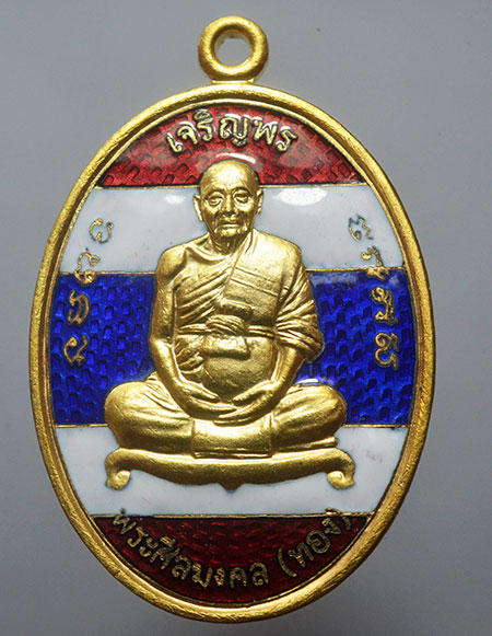 เหรียญอาจารย์ทอง รุ่น เจริญพร ปี 54 เนื้อทองแดงนอกลงยาสีธงชาติ โค๊ด เลข 4356 วัดสำเภาเชย ปัตตานี ประกอบพิธีพุทธาภิเษก ณ อุโบสถวัดสำเภาเชย จ.ปัตตานี พ่อท่านเขียววัดห้วยเงาะประธานจุดเทียนชัย พ่อท่านพรหมวัดพลานุภาพประธานดับเทียนชัย