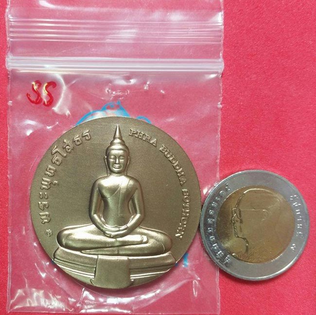 "วัดใจ" เหรียญหลวงพ่อโสธร ที่ระลึกประจำจังหวัดฉะเชิงเทรา เนื้อทองแดงพ่นทราย ขนาด 4 ซ.ม. ไม่ผ่านการใช้ UNC+ซองเดิมจากกษาปณ์