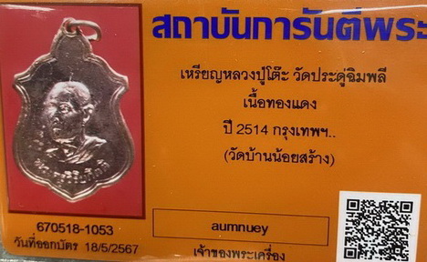 เหรียญลป.โต๊ะ วัดบ้านน้อย ปี2514 สวยมาก พร้อมประกาศที่1 |