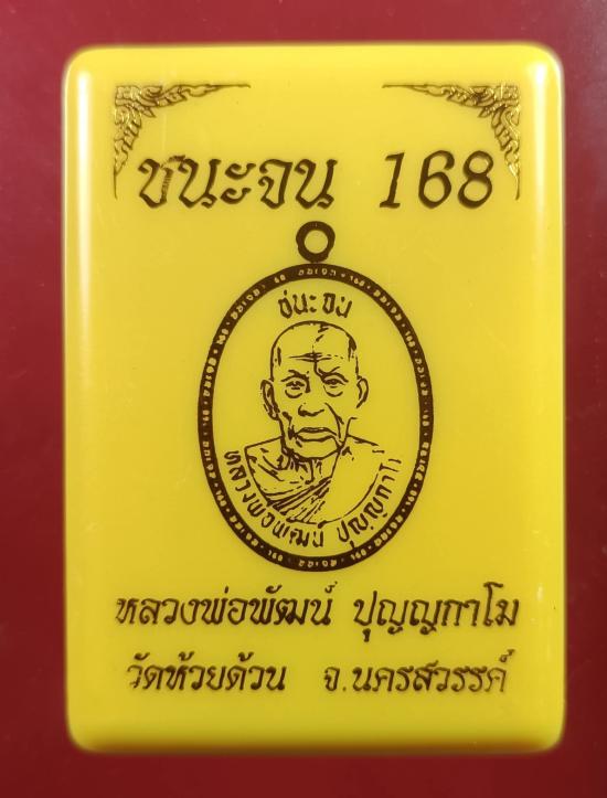 30 แดง... เหรียญชนะจน 168 (PSGA) หลวงพ่อพัฒน์ วัดห้วยด้วน เนื้อชนวน หลังเรียบ ลงยาแดง จีวร หมายเลข 133