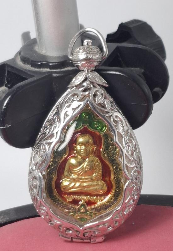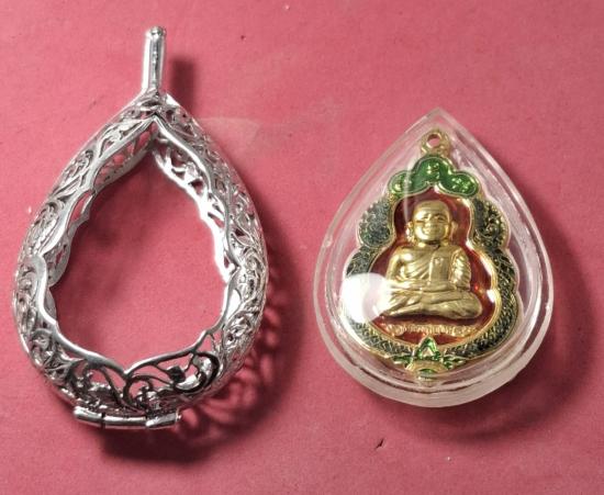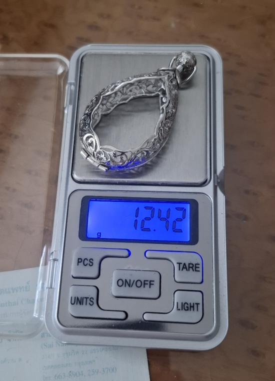 ตลับเงิน 92.5 % ชุบทองคำขาว ฉลุลาย งานตัวอย่าง เหลือ 1ใบ ใส่พระตามภาพ