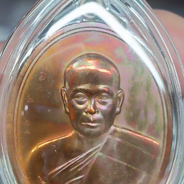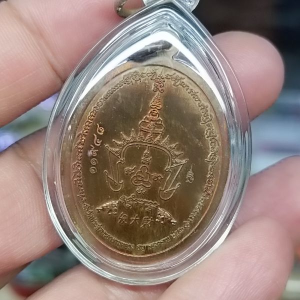 เหรียญฟาต้าไฉ พระมหาสุรศักดิ์ วัดประดู่พระอารามหลวง พ.ศ. 2556 เนื้อทองแดง เลข 11948 มีจาร เลี่ยมกันน้ำพร้อมบูชา