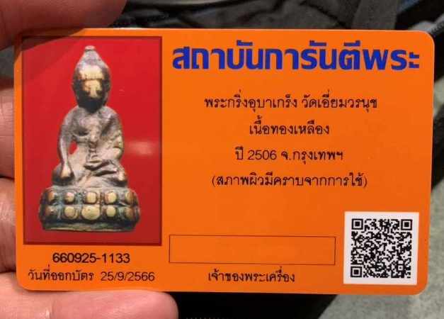 พระกริ่งอุบาเก็ง วัดเอี่ยมวรนุช กรุงเทพ ปี2506 เนื้อปลอกลูกปืน ผสมทองคำเยอะ อาจารย์ทิม วัดช้างไห้ปลุกเสก กริ่งดังดี สร้างแค่3,000องค์ หายากมากๆ สวยตามรูปครับ รับประกันแท้ ไม่มีอุดซ่อม มาพร้อมบัตรการันตรี (บัตรระบุสถาพครับ) |