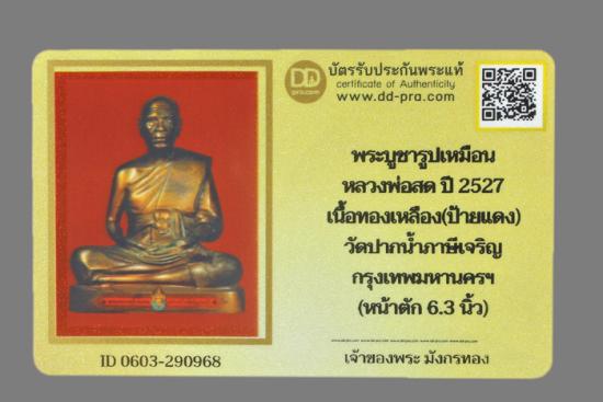 พระบูชาหลวงพ่อสด เนื้อทองเหลือง(ป้ายแดง) วัดปากน้ำภาษีเจริญ กรุงเทพฯ |