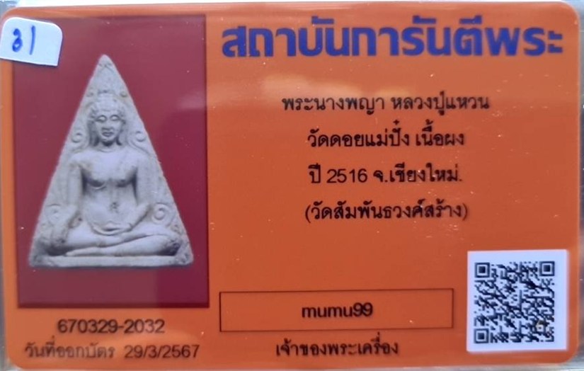@## พระนางพญา.. ลป.แหวน วัดดอยแม่ปั๋ง จ.เชียงใหม่ (พิธีปลุกเสกใหญ่ใหญ่ วัดสัมพันธวงศ์ กทม.จัดสร้าง ) ปี2516 เนื้อผง พร้อมบัตรรับรอง สภาพสวยมาก รับประกันความแท้ตลอดชีพ พิธีปลุกเสกในวาระแรก ปี 2516 -วัต |