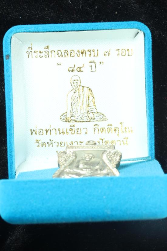 **นวะแก่เงิน โคตรสวย เหรียญสวย หายากเคาะเดียว ** เหรียญ ที่ระลึกฉลองครบ 7 รอบ 84 ปี หลวงพ่อเขียว วัดห้วยเงาะ ปัตตานี ปี 2556 เนื้อนวะ /เบอร์303 |