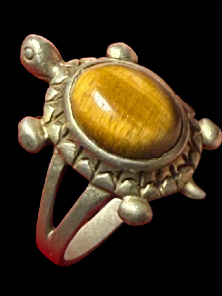 แหวนหินตาเสือตัวเรือนรูปเต่าไม่ทราบชนิดโลหะ