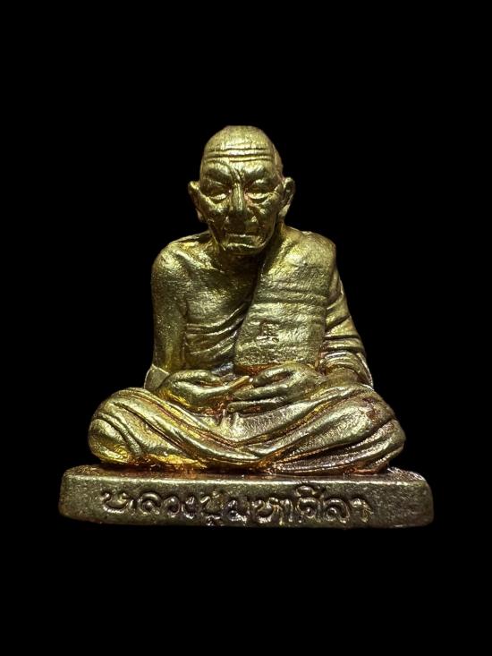 รูปหล่อหลวงปู่ศิลา รุ่นรวยโกฏิล้าน เนื้อทองฝาบาตร เลขโค็ต505 กล่องเดิม |