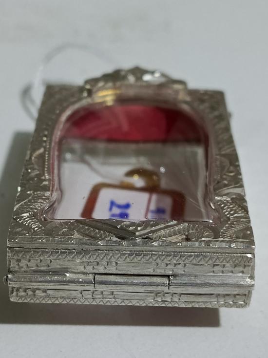 ตลับเงินแท้ เปิดหลังแกะลายของใหม่แต่งานเก่า หัวสิงห์ใหญ่ งานร้านทองเข็มดอกเห็ด หู2ชั้นข้าวหลาตัดหนางานเก่า ใส่พระสมเด็จ.หนาหนัก 21.71 กรัม ทุนใบละ 2500 รับประกันสวยไม่ได้ใช้
