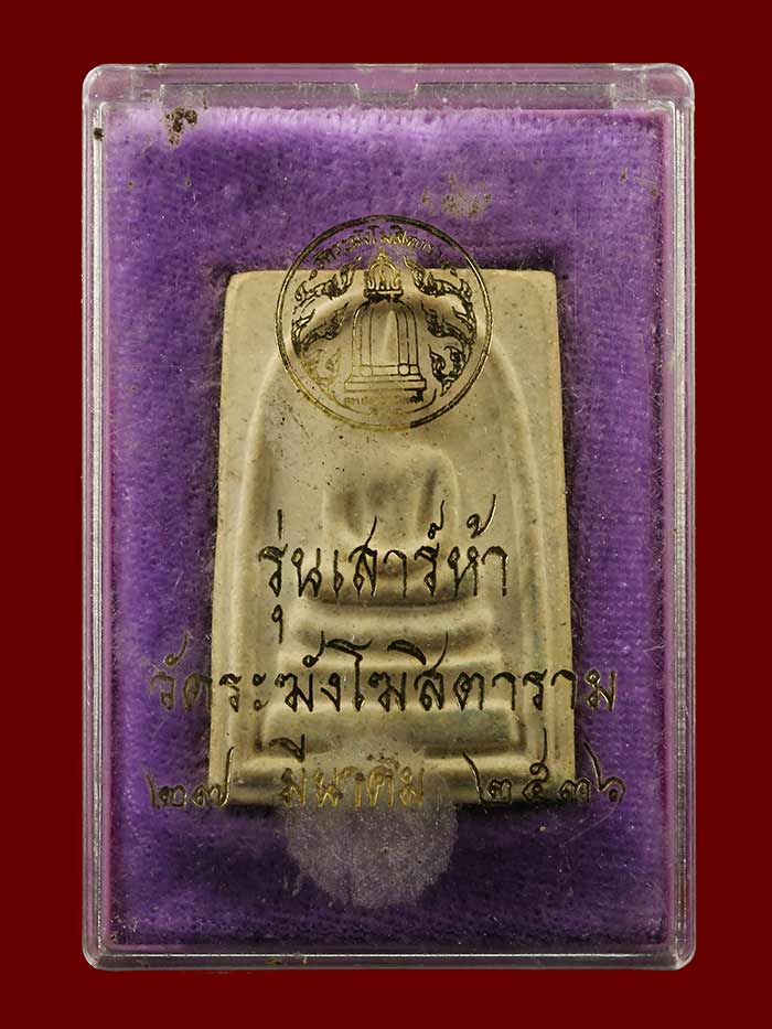 วัดใจ พระสมเด็จวัดระฆัง รุ่นเสาร์ห้า ปี2536 พิมพ์เกศทะลุซุ้ม หลังตรายาง พร้อมกล่องเดิม |