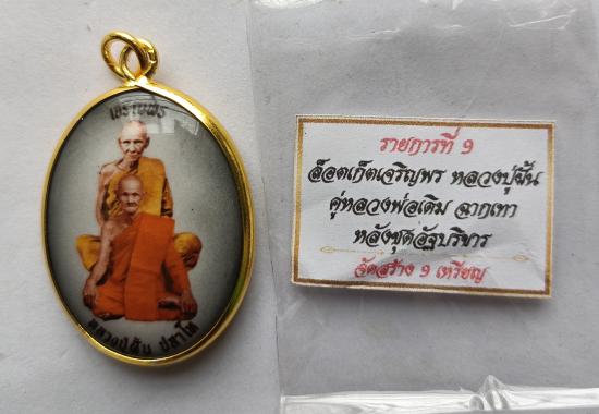 วัดใจเคาะเดียวแดงจ้า ล็อกเก็ตเจริญพรหลวงปู่ฝั้นคู่หลวงพ่อเดิม ฉากเทา สร้าง9องค์ องค์นี้หมายเลข7 เลี่ยมทองไมครอนจับขอบ เคาะเดียวแดงจ้า |