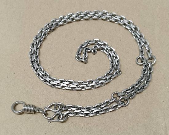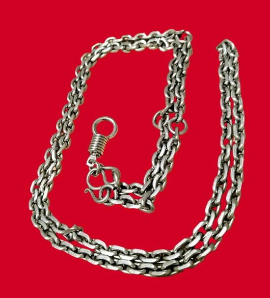 ... สร้อยสแตนเลส 'ลาย คชกริช' ... ใส่พระ 5 องค์ +ตะขอฯ ... ยาว 28.8 นิ้ว กว้าง 4 มิล. [มือ 2] ... |
