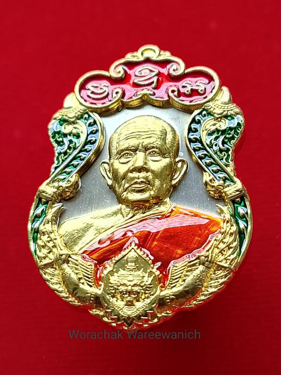 เหรียญเสมา รุ่น "ราชันย์พันล้าน" หลวงปู่หา สุภโร วัดสักกะวัน อ.สหัสขันธ์ จ.กาฬสินธุ์ ปี ๒๕๖๔ เนื้ออัลปาก้า ขอบทองทิพย์ลงยาเขียว-แดง องค์พระหน้ากากทองทิพย์ลงยาจีวร ด้านหลังตอกโค๊ต เลข ๒๐ ผิวสวยเดิม จมูกโด่ง พร้อมกล่องเดิมครับ