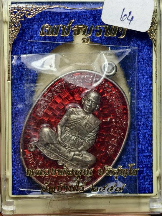 50.-/// เหรียญรูปไข่ หลวงพ่อคูณ รุ่นเพชรบูรพา เนื้อเงินลงยาหน้ากากเงิน ปี2557 (นำหนัก 15.6 กรัม)