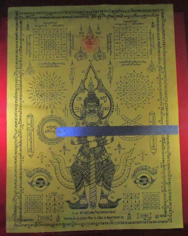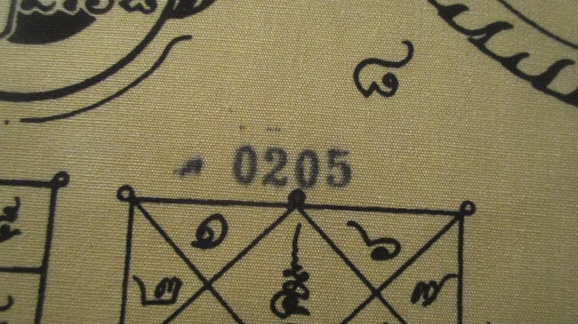 ผ้ายันต์ ท้าวเวสสุวรรณ รุ่น ๑ สร้างอุโบสถเรือนไทยมหาอุตม์ วัดลาดเป้ง ต.นางตะเคียน อ.เมือง จ.สมุทรสงคราม ผืนที่ 1 ครับ (สีดำ ครับ) |