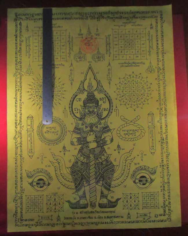 ผ้ายันต์ ท้าวเวสสุวรรณ รุ่น ๑ สร้างอุโบสถเรือนไทยมหาอุตม์ วัดลาดเป้ง ต.นางตะเคียน อ.เมือง จ.สมุทรสงคราม ผืนที่ 2 ครับ (สีดำ ครับ) |