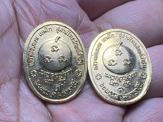 2 เหรียญ สวยๆ เหรียญรูปไข่ หลวงพ่อเกษม เขมโก (พิมพ์ใหญ่) รุ่น 60 พรรษา มหาราชินี ปี 35 เนื้อกะไหล่ทอง โค้ด (พร้อมกล่องเดิม) ส่ง Ems |