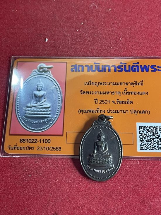 เหรียญพระงาม เนื้อทองแดง ผิวปรอท แมงทับ ปี 2521พ่อเที่ยง ปลุกเสก พร้อมบัตร