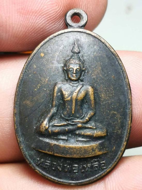เหรียญหลวงพ่อเหลือ วัดสร้อยทอง เนื้อทองแดงรมดำ หลังตอกโค๊ตสภาพตามรูปราคาเบาๆ |
