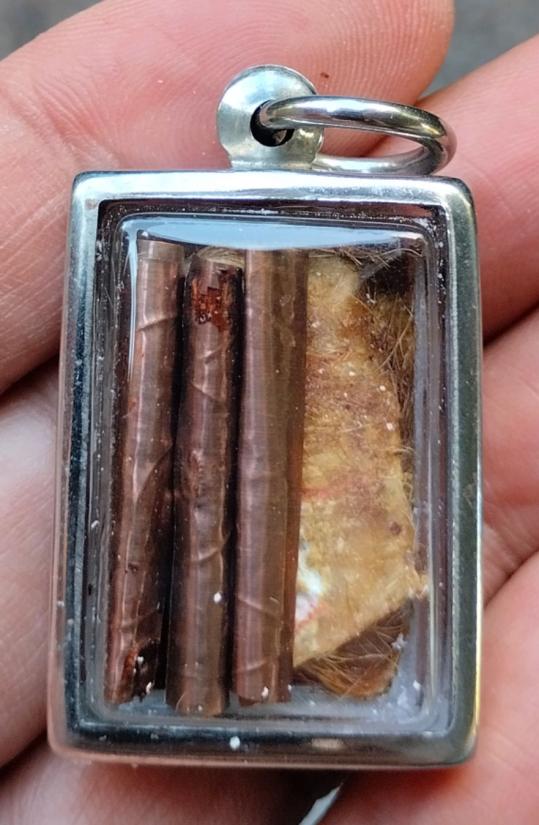 ตะกรุดหนังเสือ ไม่ทราบที่วัดใจที่ 60฿ เลี่ยมกันนำ้ในตลับพูกสแตนเลส |