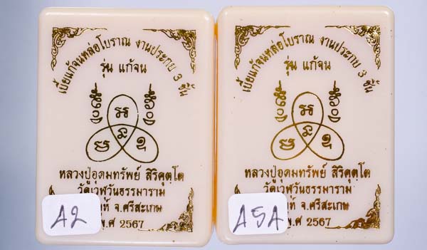 *ทีเดียว 2 ลูก 2 เนื้อ หลวงปู่มหาศิลาร่วมเศก เบี้ยแก้จนหล่อโบราณ ประกบ3ชิ้น อุดมวลสาร หลวงปู่อุดมทรัพย์ สิริคุตโต วัดเวฬุวันธรรมาราม สวยมาก เคาะเดียวแดง* |