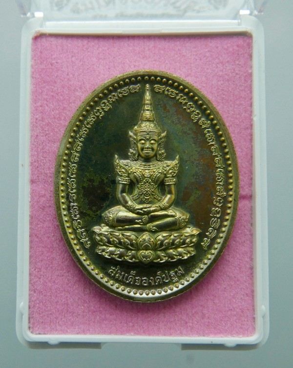 สมเด็จองค์ปฐม รุ่นยิ้มรับทรัพย์ เนื้อเขียวเหล็กไหล พิมพ์ใหญ่ หลวงพ่อเล็ก วัดท่าขนุน เลข 3877 |