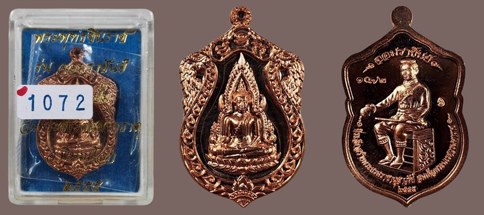 เหรียญปั้มพระพุทธชินราช รุ่น"จอมราชันย์" เนื้อทองแดงนอก ปี 2555 วัดพระศรีรัตนมหาธาตุ จ.พิษณุโลก สวยพร้อมกล่อง ซีลเดิมๆครับ |