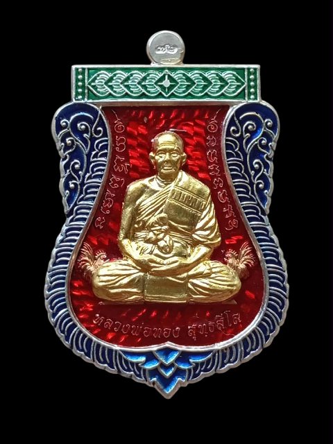 เหรียญเลื่อนสมณศักดิ์ 6 รอบ หลวงพ่อทอง วัดบ้านไร่ เนื้อนวะหน้ากากทองคำขอบเงินลงยา