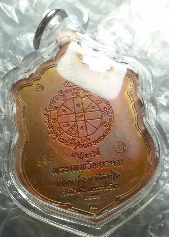 หลวงพ่อคูณ เหรียญเสมา EOD เนื้อทองแดง หน้ากากปลอกลูกปืน เลข No.514 จมูกโด่ง ผิวรุ้งคัดสวย พร้อมเลี่ยม |