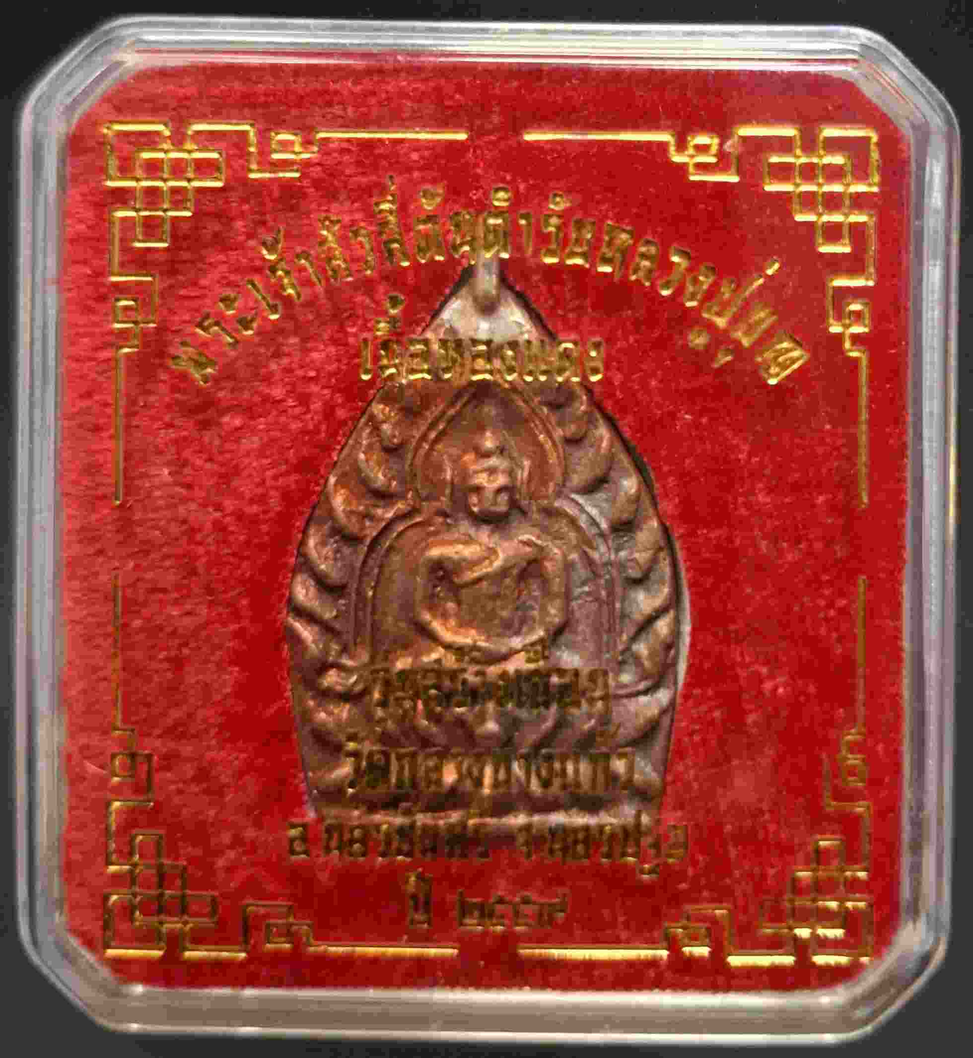 เหรียญหล่อเจ้าสัว 4 ปี 59 วัดกลางฯ นครปฐม เนื้อทอแดงพิมพ์ใหญ่ หมายเลข 22143 สภาพสวยผิวแดงเดิม กล่องเดิมจากวัดครบครับ