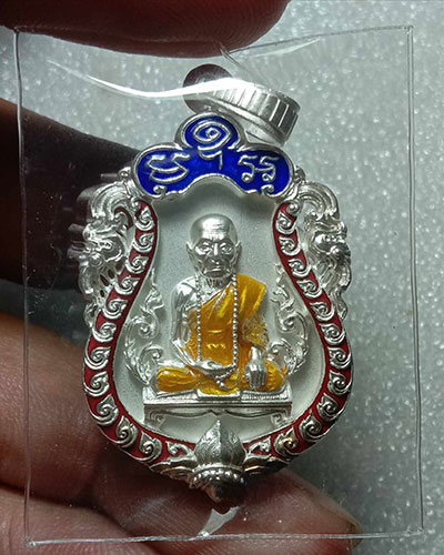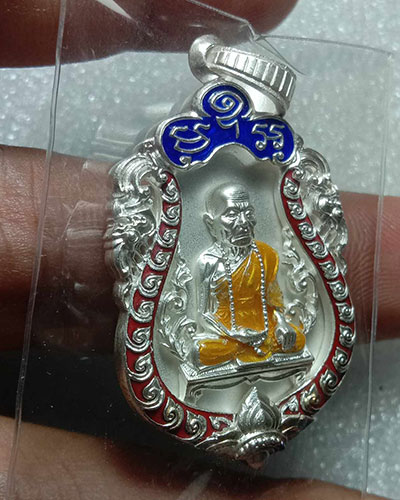 เหรียญเสมาฉลุยกองค์ หลวงปู่คำบุ วัดกุดชมภู รุ่นเจริญพรสดุ้งกลับ เนื้อเงินลงยาสีแดง หมายเลข ๑๖๒